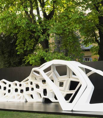 2015年米兰设计周期间,意大利奢侈品品牌宝格丽展示了Zaha Hadid设计的建筑装置,项目名为“Serpenti”,意为“蛇”,指代品牌知名