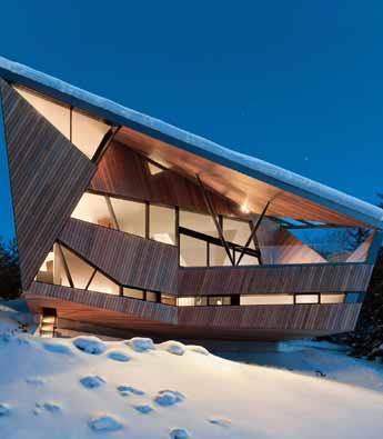 Patkau建筑事务所设计了位于加拿大英属哥伦比亚省的Hadaway住宅。项目坐落于俯瞰Whistler峡谷的山坡上,其尖尖的屋顶有利于将积雪导