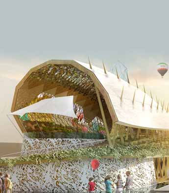 伊朗是一个传统、可持续、多样化的国家,搭建起东西方沟通的战略桥梁。这三个因素也是2015年米兰世博会伊朗馆设计概念。方案分三步完成,分别由意大利
