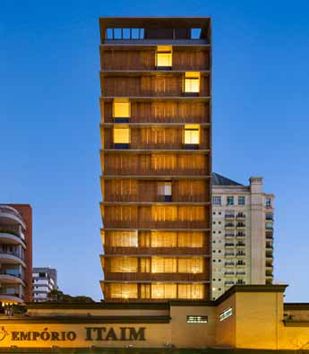 MK27工作室设计了位于巴西圣保罗的Vitacon Itaim公寓。建筑的一大特点是北立面设有穿孔木窗,北侧是最需要遮阳的朝向,住户可自由控制起