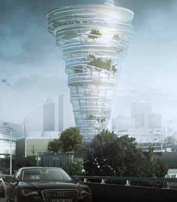 美国俄克拉荷马公司KKT完成了位于塔尔萨车库上方的摩天楼方案。项目灵感来自龙卷风,内部容纳了气候、风暴研究中心,涵盖顶层酒吧餐厅和草坪。夜幕降临