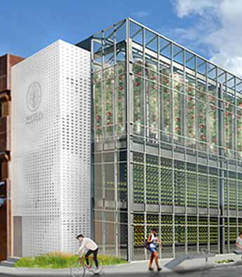 项目位于美国怀俄明州Jackson Hole,“垂直收获”是一座竖直的溶液培养城市农场。项目位于市中心区域,占地0.1公顷,年产相当于5公顷土地