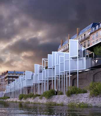 MenoMenoPiu建筑事务所设计了位于法国巴黎塞纳河畔的EauBERGE胶囊旅馆。由于巴黎是个旅游城市,设计师完成的临时建筑同时方便居民和游