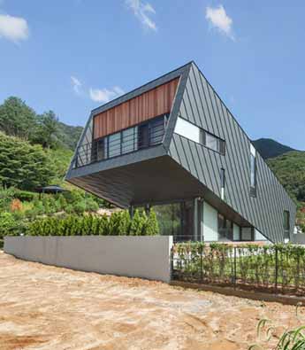 El Salvador住宅邻近首尔,由Praud建筑事务所设计。建筑是一个倾斜的箱子行结构,下方是山地景观。住宅毗邻Chungpyong湖,业主