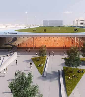 OSPA建筑事务所完成了巴西阿雷格里港健康与科学联邦大学(UFCSPA)Canoas体育场设计方案。该项目呈现出广场样式,具有流动性和通透性,与