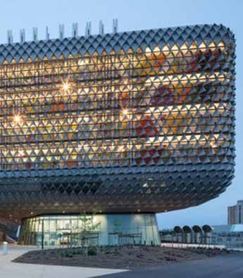 纽约Biber建筑事务所设计了米兰2015年世博会美国馆设计。该馆名为“美国食物2.0,联合供给地球”。设计构想是一个加长型谷仓,包含两层设施和