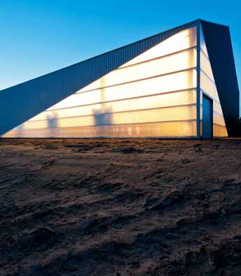 CEBRA设计的丹麦Logstor体育馆如同巨大的钢铁组合模型,结合了标准波纹钢屋面板和半透明塑料板材料。项目运用模块化建造系统,设计方同丹麦文