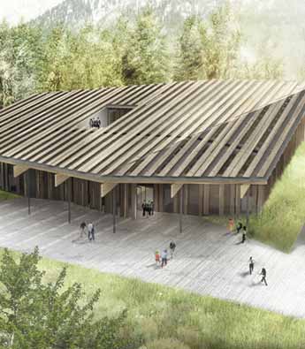 建筑师隈研吾设计了位于法国滑雪胜地Chamonix的Blue Ice公司总部。项目目前正在施工过程中,将为这座登山用品公司提供位于群山环境中的办