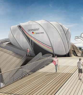 2015年米兰世博会德国馆是一个开放式公共建筑,名称为“创意园地”,该项目由多个创意工作室团队设计,包括Schmidhuber建筑事务所。为了迎