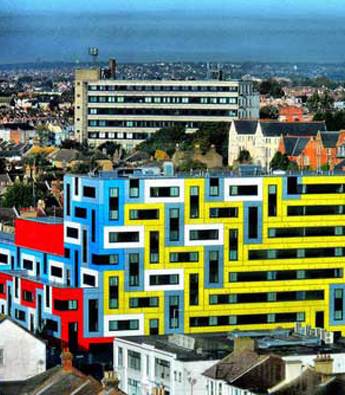 英国埃塞克斯大学绍森德校区的学生宿舍于2010年全新开放,环绕封闭式的宿舍楼内共有561个房间,均带独立卫浴,房间里有免费网络,公共学习讨论休闲