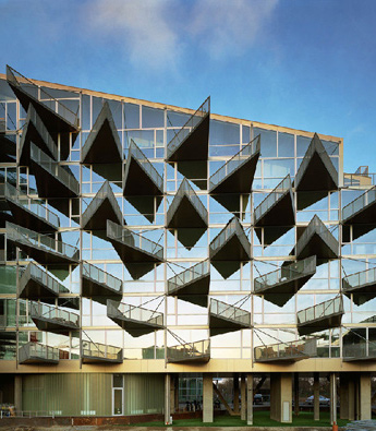 这一座浅绿色的建筑位于丹麦哥本哈根市,以哥本哈根大学科技学院住宿之用。浅绿的建筑主色调,为强调节能这一建筑设计概念。这是一个时尚典范的环保型建筑