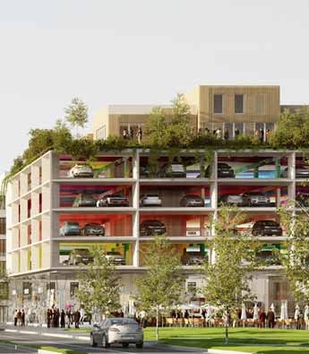 Brisac Gonzalez公司设计了位于法国波尔多的一座多层停车场项目。项目停车空间位于底层商铺和顶层住宅之间。项目包含450个停车位,此外