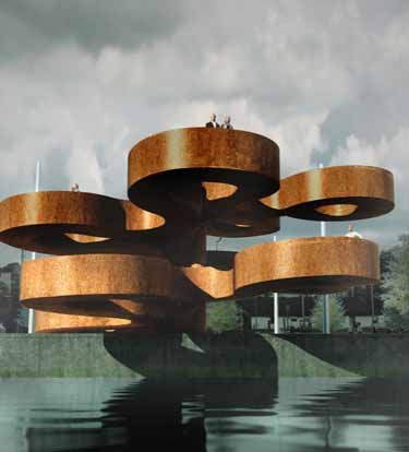 “水上花”公共观景台位于丹麦奥胡斯,是一个3D悬吊于湖面上的建筑结构。项目是丹麦BIG建筑事务所设计的参赛方案,带领游人开启一段旅程,即那个港口