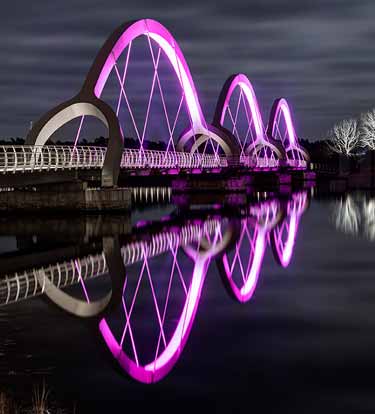 Ljusarkitektur建筑事务所设计的Solvesborg桥配合独特的灯光照明方案,提升了其作为建筑地标的地位。项目采用Lumenpuls