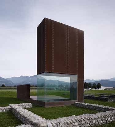 Marte Marte Architects建筑事务所设计了位于奥地利西部小镇Brederis的一座铁锈色建筑。建筑目的是为前往古罗马挖掘遗址的
