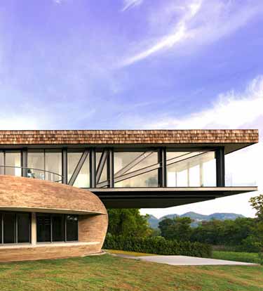 Architectkidd设计的这栋住宅位于泰国曼谷以东的Khao Yai,椭圆形的一层如同被矩形二层挤压,造型十分特别。设计师表示,“住宅所在