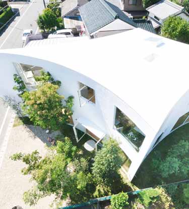 日本Velocity建筑工作室设计了位于爱知丰川市的一栋白色住宅。建筑具有压扁的钻石形状,一方面最大程度扩展了空间,另一方面不对周围邻居的视野造