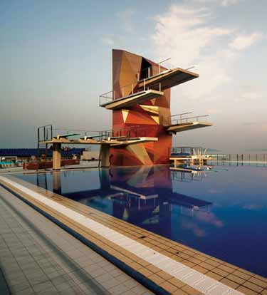 克罗地亚Rijeka水上中心跳台由意大利Zoppini Associati工作室设计,跳台设计灵感来自法拉廖尼天然石材,这种石材在海岸附近海面较