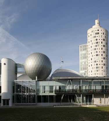 位于Tartu科学中心与此前建成的蜗牛大楼(Tigutorn)结为整体。蜗牛大楼的设计理念是一个巨大的螺旋结构,科学中心呈现拉长椭圆结构,这种神