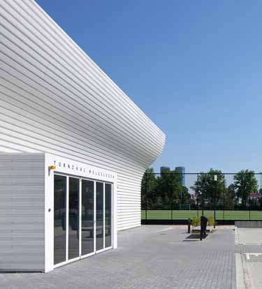 NL建筑工作室设计了位于荷兰Utrecht的体操馆。体育馆没有窗户,不过墙壁向外延伸,阳光可以从建筑上方进入室内。