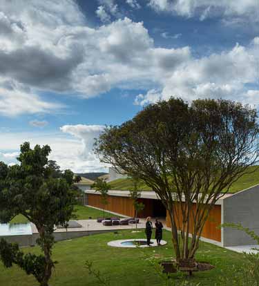 巴西MK27工作室完成了最新项目——位于圣保罗的MM别墅设计。东西轴线上是一个加强混凝土结构建筑,绿色屋顶使房屋融入到翠绿山峰景致中。从车库到入