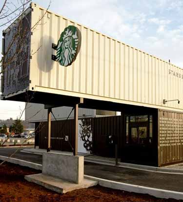 星巴克在美国西雅图市郊Tukwila区创建了一个免下车咖啡店,咖啡巨擎首次运用四个回收集装箱构成店铺。咖啡店背后的设计理念受咖啡来源渠道影响,咖