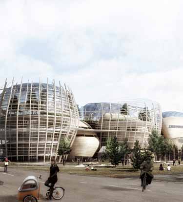 法国Djuric Tardio建筑事务所为赫尔辛基中央图书馆提供了设计方案,配合所有新电子媒体设备,设计展示了回归图书和知识来源的转变。建筑的木
