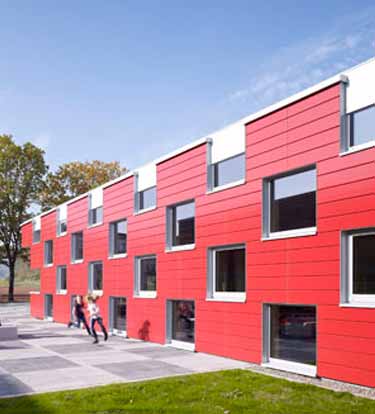 Spreier Trenner建筑设计公司完成了德国西部Salmtal中学餐厅设计,建筑外表由棋盘式的不透明板块和窗户构成,建筑不仅是学生就餐场
