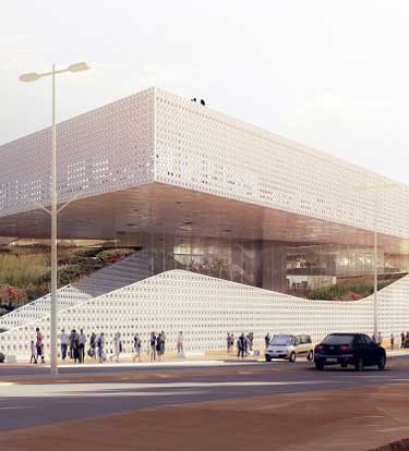 项目原址是一个建于20世纪80年代的图书馆,临近一所19世纪古老的剧场,图书馆的混凝土模度体系模仿了剧场的外立面特征。图书馆老化速度很快,到21