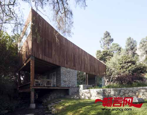 因为在建筑地块上出现了一座小山包,所以,住宅的大部分房间都建在了空中:一座三层高的矩形建筑将设有一间起居室、一间厨房和一间卧室。在空中房屋下面有