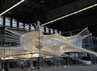 维也纳和萨格勒布设计团队Use/Numen上周在位于原滕珀尔霍夫机场的2010年柏林国际设计节的会场上,围绕着脚手架编织了一个胶带装置。