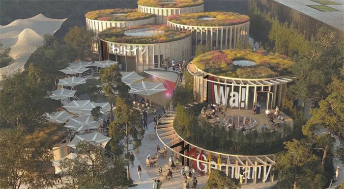 项目展馆名为“Wa! Germany”,将在建筑和展览中体现“循环经济”的主题。方案提出了以圆形,即循环作为主要元素的建筑和展览概念设计,影响德