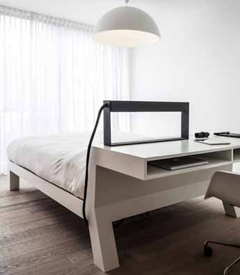 建筑师Ranaan Stern完成了以色列特拉维夫一个15平米开间设计。公寓包括两张工作台、36个抽屉、模块式储物柜、钉板展示墙和折叠床。项目采