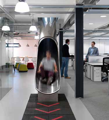 英国Guy Hollaway建筑事务所为View London线上活动网站办公室设计了一个带有滑梯的空间。项目将英国肯特郡的一家夜总会进行了翻新