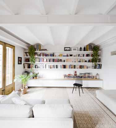 项目位于西班牙巴塞罗那Eixample区一座建筑的最高两层。项目设计师将其改造成围绕现有露台设计的公寓。下层区域面积为65平米,面朝街道,阳光穿