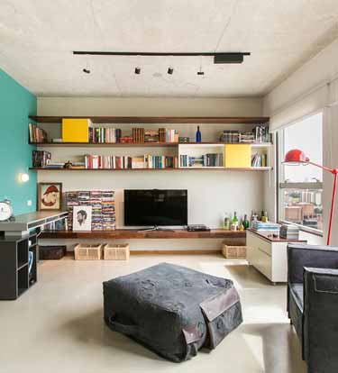 公寓位于西班牙马德里,面积为58平米。Elii建筑工作室将地面上所有障碍移除,实现了空间灵活性。设计方案有两个重心:其一,包含楼梯、置物架和储存