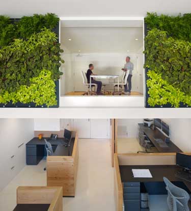 尽管原始空间并不太大(约100平方米),却包含了很高的天花板,阁楼以及较大的玻璃店面。办公室空间仔细安排了以下设施:被低矮的挡板隔开的若干工位、