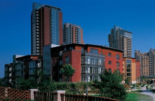 多种不同建筑风格的组团综合在一起,然后再在不同的区域内建造与之相符的园林景观,使得整个社区体现出浓郁的异域风情。在很多楼盘中,其建筑风格不能单纯