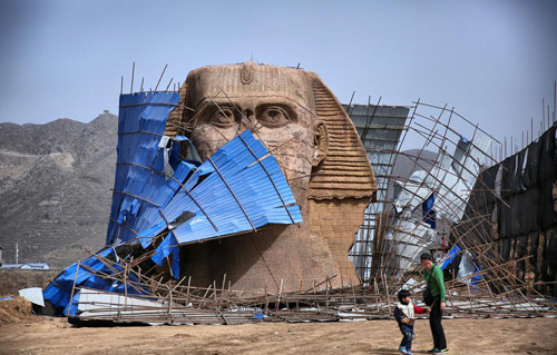 曾一度引起争议的石家庄版“狮身人面像”于4月2日被拆分,拆除原因并未公布。据了解,该建筑还曾被埃及文物部门投诉。另外,我们发现,在全国范围内至少