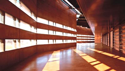 只有意大利才会拥有这样美丽颜色的房子,它是用水泥和木头的材质做成,一个迷人的红色长廊将两个不同功能的建筑链接,而不同的材质用以表明不同的用途;房