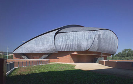 著名建筑师伦佐·皮亚诺设计,罗马音乐厅是个多功能的复合式音乐厅,由三个伫立在大片植栽丛状似音乐盒的量体所构成,Renzo Piano设计,成功
