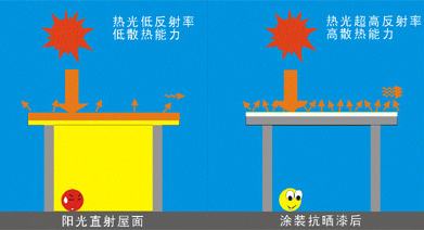 防晒隔热涂料是近年来发展起来的一种新型隔热节能材料,通过有效地反射、阻隔、辐射太阳光的能量,能明显降低物体空间温度,可让室内降温6℃以上。减少空