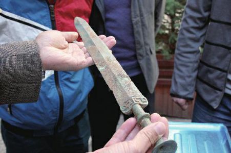 10月26日凌晨,丹凤龙桥水泥有限公司员工李磊在作业时,在黏土堆里发现一把古剑,随后他将这件宝贝交给了丹凤县文物部门。昨日,该县文物部门证实,李