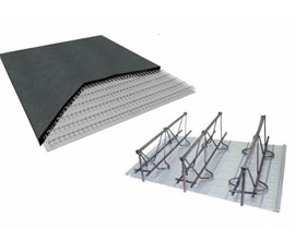 钢筋桁架楼承板是将楼板中的钢筋在工厂采用进口设备加工成为钢筋桁架,并将钢筋桁架与镀锌板在工厂焊成一体的组合楼承板。在施工阶段,钢筋桁架楼承板可承