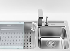 FRANKE弗兰卡铂尔曼水槽以棱角与直线的锋芒交错表现出水槽极富现代感的简约格调,弗兰卡百年设计理念与极简主义在这里融合,使水槽也闪耀出有如水晶