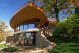 从街上几乎看不到本案的存在。一条单行道驱动被树环绕以至于遮挡了街道视线,周围变得越来越有茂密的橡树森林。从之前房屋留下的走道一直往上,在山上可以
