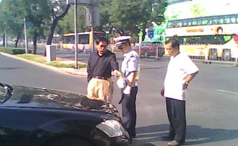 昨日上午,西单北大街,地产界名人任志强驾奔驰车与一辆直行电动三轮车发生剐蹭。三轮车翻倒滑出两三米外,女乘客手部受伤。警方认定,任志强负全责。随后
